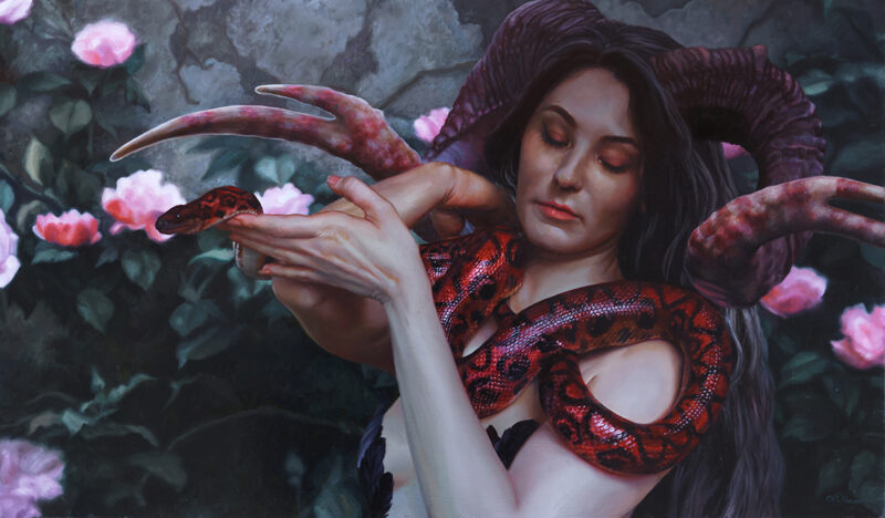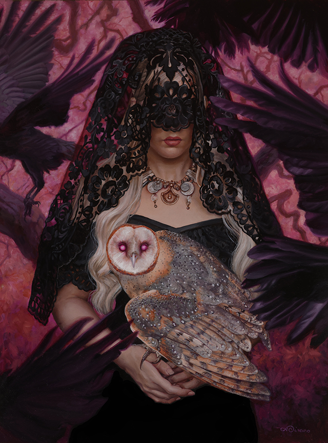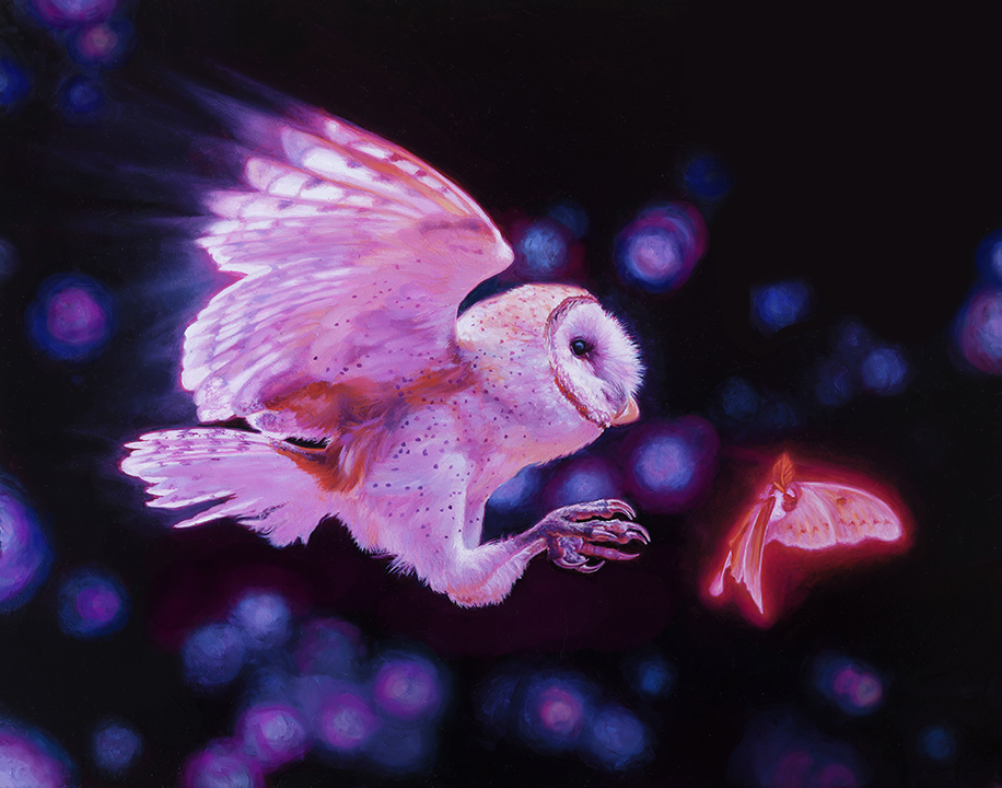 Winner of the Spectrum 24 Rising Star Award, Alessandra is an avid daydreamer that stumbled into art at a young age where fantastical worlds and creatures were and still are, a far better alternative than reality. The images that emerge on the surface of a panel often show themselves as ideas usually in the shower, stuck in traffic or often times no earlier than 4:35 a.m. when she would much rather be sleeping. While painting is her primary time consumer, she also enjoys the other important things in life such as late night conversations in parking lots with friends, driving fast cars on nice days, long chinchilla cuddles in bed and her passion for dance. her artwork has been shown at Lovett's gallery, Haven gallery and Copro gallery and can be found on Everyday Original monthly.