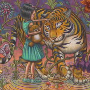 April Solomon is an illustrator and fine artist who has currently earned her bachelor’s degree in illustration at the Laguna College of Art and Design. April’s passion for learning the old masterful techniques of traditional drawing and painting are used to achieve believable fantasy creatures and horrific monsters.