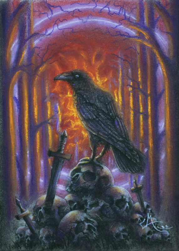 Chris’s work always starts with a base and evolves through multiple steps including, hand drawn concept work, a digital process done In procreate and from there, he transfers it to paper. He uses soft pastel to create imaginative worlds, with transitional elements and precise blending techniques.