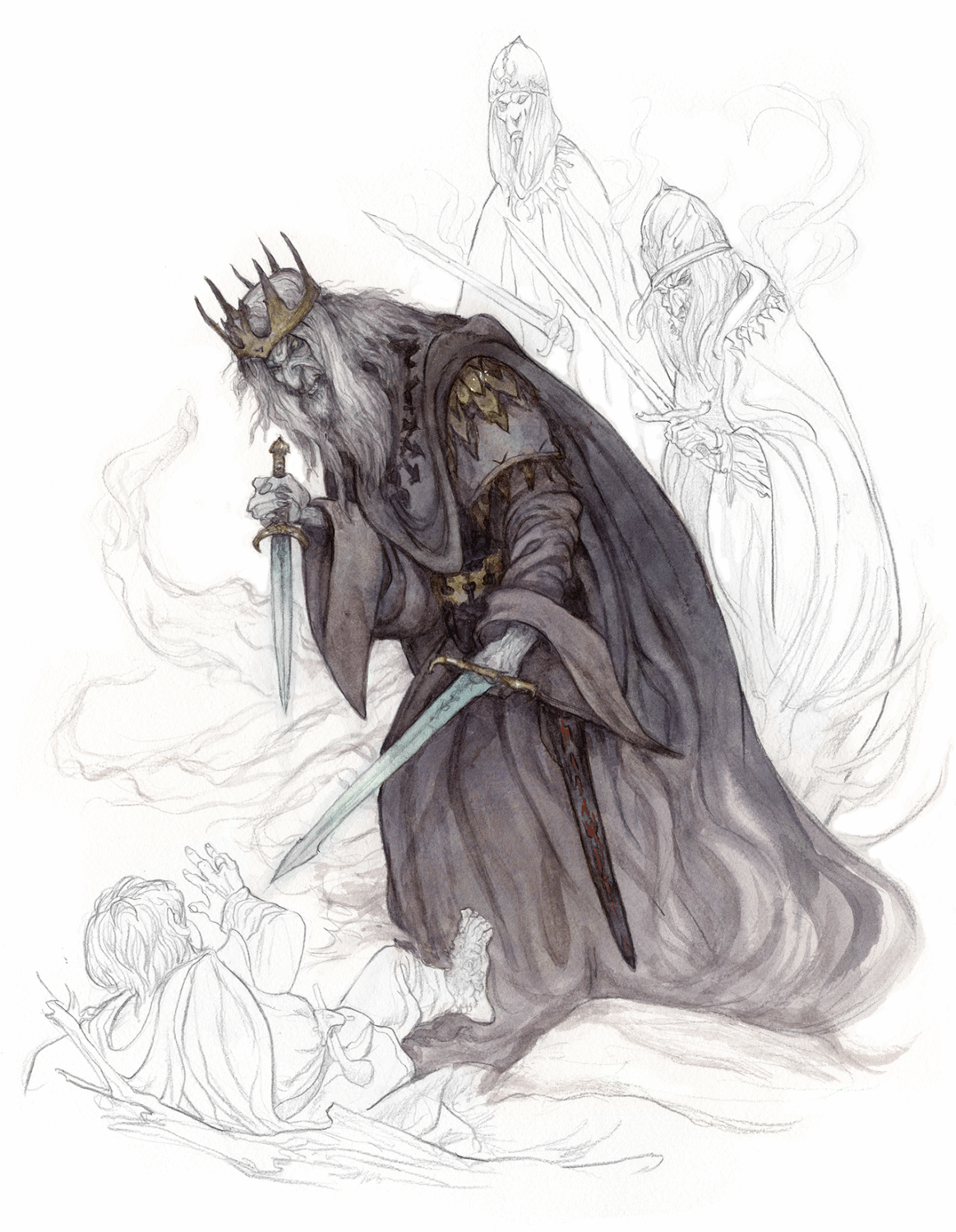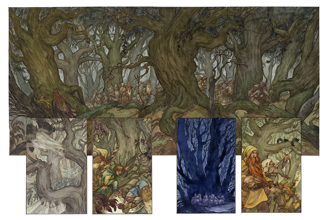 David Wenzel has been part of the fantasy art movement since the 1970’s when, Middle Earth The World of Tolkien Illustrated was released. He has continued to work on fantasy projects in the children’s book, trade book, and graphic novel markets throughout his career. Illustrations from his 1980s book, Kingdom of the Dwarves, are in the permanent collection of the New Britain Museum of American Art. These early works reflected his interest in pen and ink combined with watercolor, inspired by artists like Rackham and Dulac. This technique was instrumental in creating the artworks for, The Hobbit, graphic novel in the early 90s, which has been revised, and is still in print worldwide. This book is the only graphic novel that will ever be printed by the Tolkien Estate. In 2025 the book has been revised and expanded with over 40 new paintings. In many of Wenzel's newer artworks the ink line has disappeared so his current works are generated to be paintings. One of the aspects of the fantastic that has intrigued Wenzel are the areas where people begin to believe there are elements of fantasy have existed in our “real” world. This has led him to return to, Kingdom of the Dwarves, to expand the narrative he was developing at the beginning of his career. Like many of his painting contemporaries he believes his best work is still in front of him.