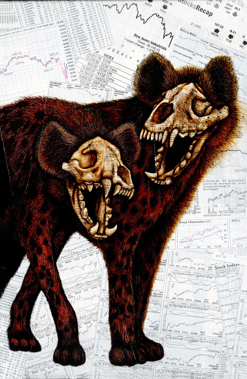Elisha Capie is an illustrator who creates hyper-realistic illustrations, done with a fine-tipped pen, allowing her the freedom to add intricate details and nuances to her works. Created entirely by hand, many of her pieces are done on old book pages, sheet music, or paperwork. Commonly known as “upcycling,” she loves the idea of taking something old and beaten, battered and unloved, and creating something new with it. This added depth leads to a fuller, more intricate piece of art.