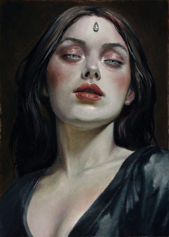 Jamie Mahood is a Texas-based black-and-grey portrait tattoo artist with over twenty years of experience. After a lifetime of reading fantasy, science fiction, and comics, she recently decided to try her hand at oil painting and has been focused on learning it for the past few months.