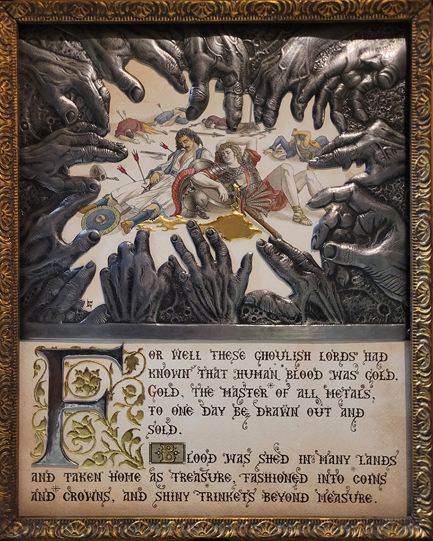 Jon is an award-winning illustrator, author, and professor. He has worked on feature films, video games, novels, comics, board games, trading cards, and album covers. He also currently works for Hasbro, Hit Point Press, and other tabletop game publishers. During his time as a creature effects and make-up artist in Los Angeles, Jon worked on latex monster make-up, body suits, and promotional material for feature length films including Godzilla, Silent Hill, and Underworld 2. Jon has been a guest of honor at FaerieCon and ArtistaCon. He has participated in several IX Arts panels and lectures. He won Best in Show at GenCon in 2019, served as an Art Show juror there in 2022, and was one of the three featured artists in 2023. His work has been displayed in galleries all over the country. He has written, illustrated, and published three books. His first two books are part of his fantasy fiction series called Astromythos. It is an extensive series of books with original myths from his invented universe. The foreward in Book One was written by Brian and Wendy Froud. His third book, a five-part adventure compatible with D&D fifth edition, was published by Hit Point Press. He is currently finishing Book Two of the Astromythos series and is drafting a teleplay treatment for an Astromythos animated series.