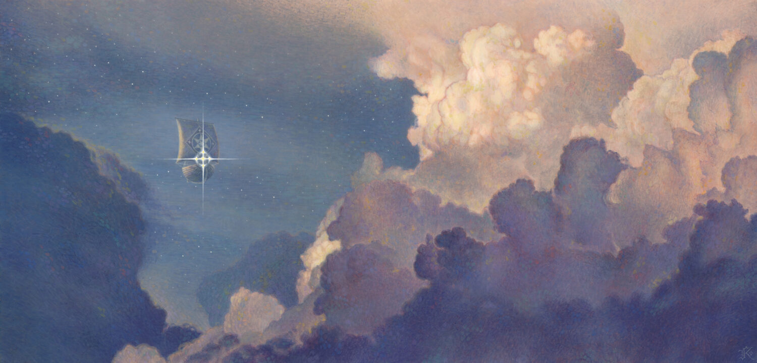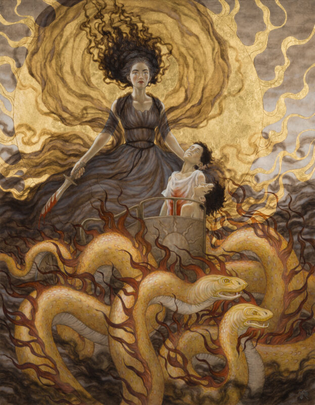 Since childhood, she has held a special love for folklore and mythology, and is fascinated with the way ancient tales, archetypes and symbols resonate over and over, the visual depictions of them forming an unending thread of story from artist to artist and century to century, no matter how literal or oblique the interpretation. Whatever her subject, she seeks to stir with beauty, to arrest with quietude, and ultimately to leave the viewer with a lingering sense that they have had a brush with the sublime.