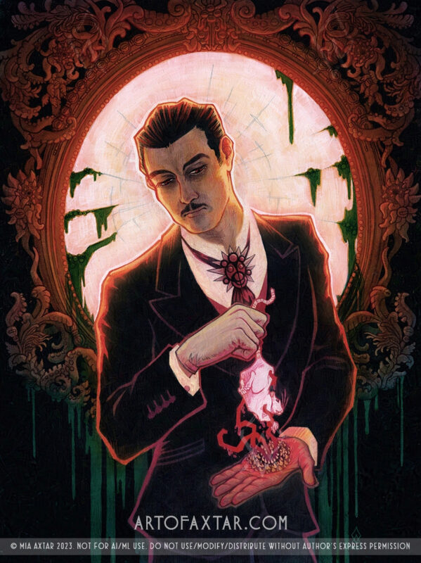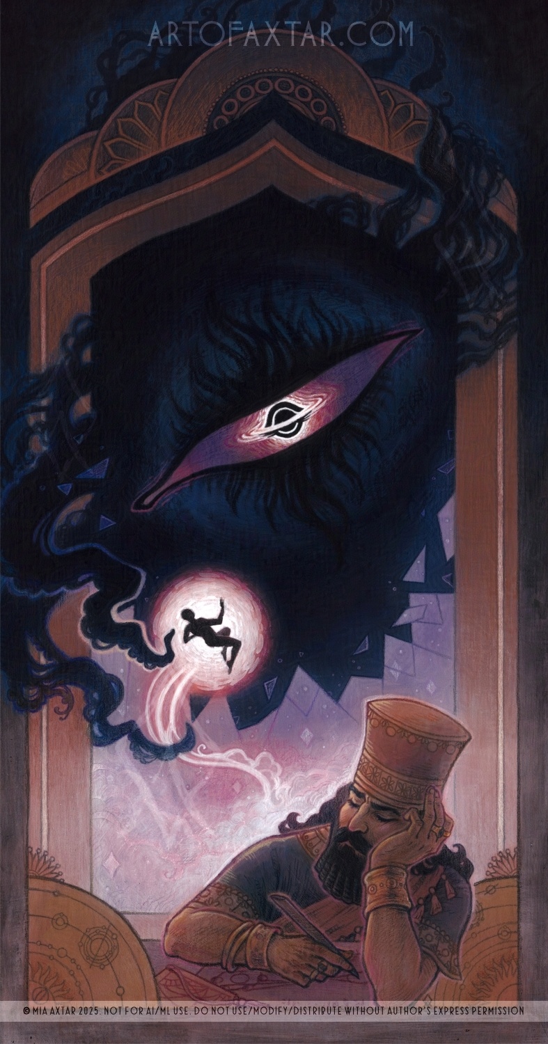 Acrylic paint, acrylic ink, pencils, on gessoed board