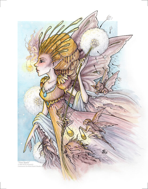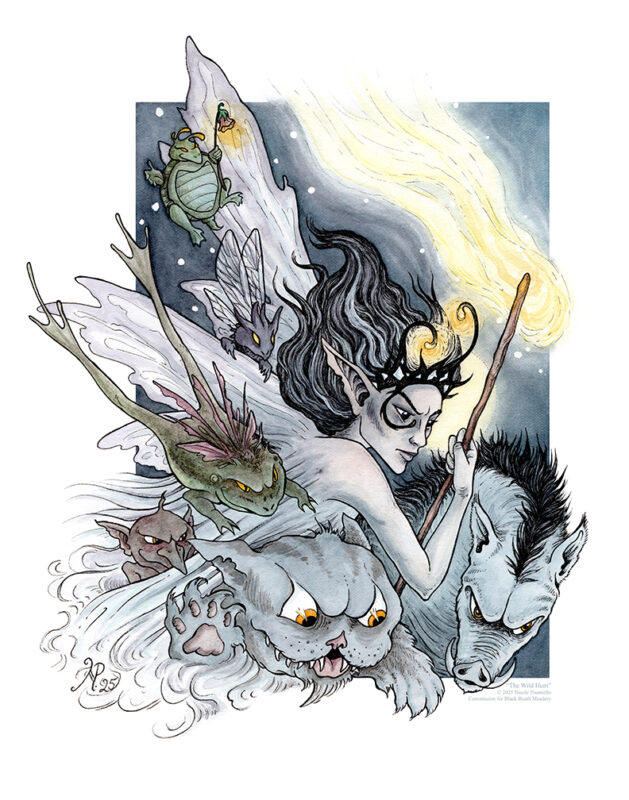 Nicole Pisaniello is an artist and designer with a penchant for the fantastical. Her work has been shown in fantasy art books, galleries, and in two solo shows at The Poe Museum in Richmond. She enjoys melding the beautiful with the grotesque, and it is her belief that much of her artistic insanity comes from being exposed to the works of Brian Froud, David Bowie, and Tim Curry at too young an age.