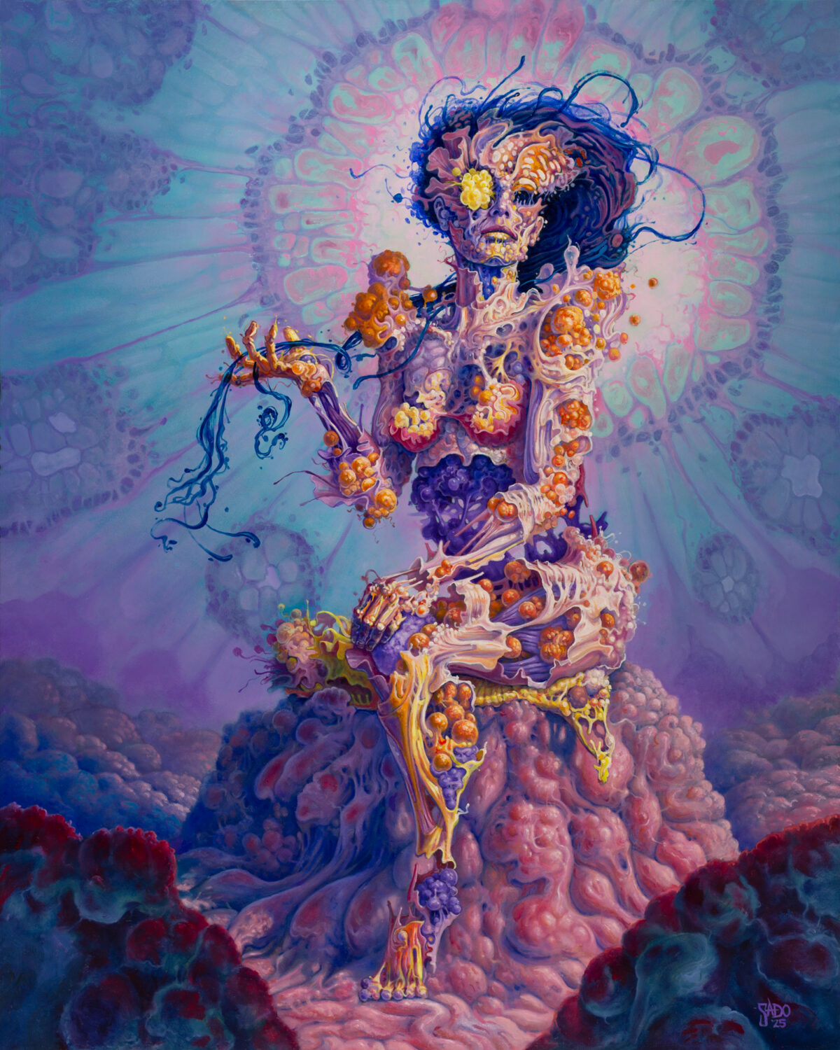 Started in 2020, is a series of figures created from mold, fungal, and bacterial cell cultures. The vision of the series is to create a world to present the beautiful nature of human and animal forms, but visualized in the colorful patterns and irregular shapes developed within the cultures themselves.